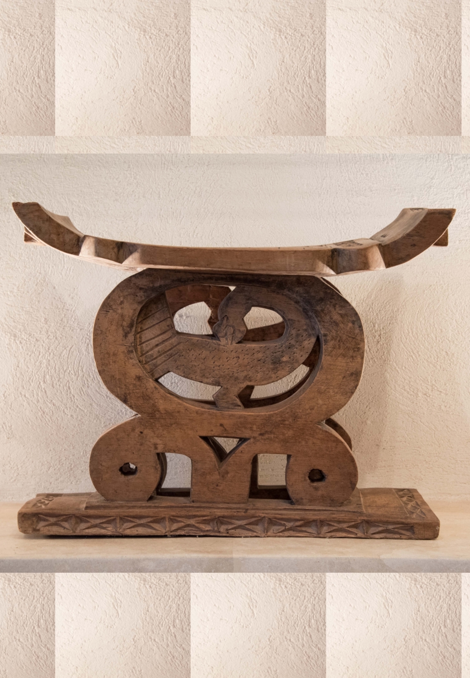 3083 The ancestral spirit of the Akan peoples was believed to reside not in figurative image, but in a specific stool, which ritually blackened with sacrificial offering. Ancestor cults for royal and non-royal Akan were focused on "stool rooms" where these symbols were housed.